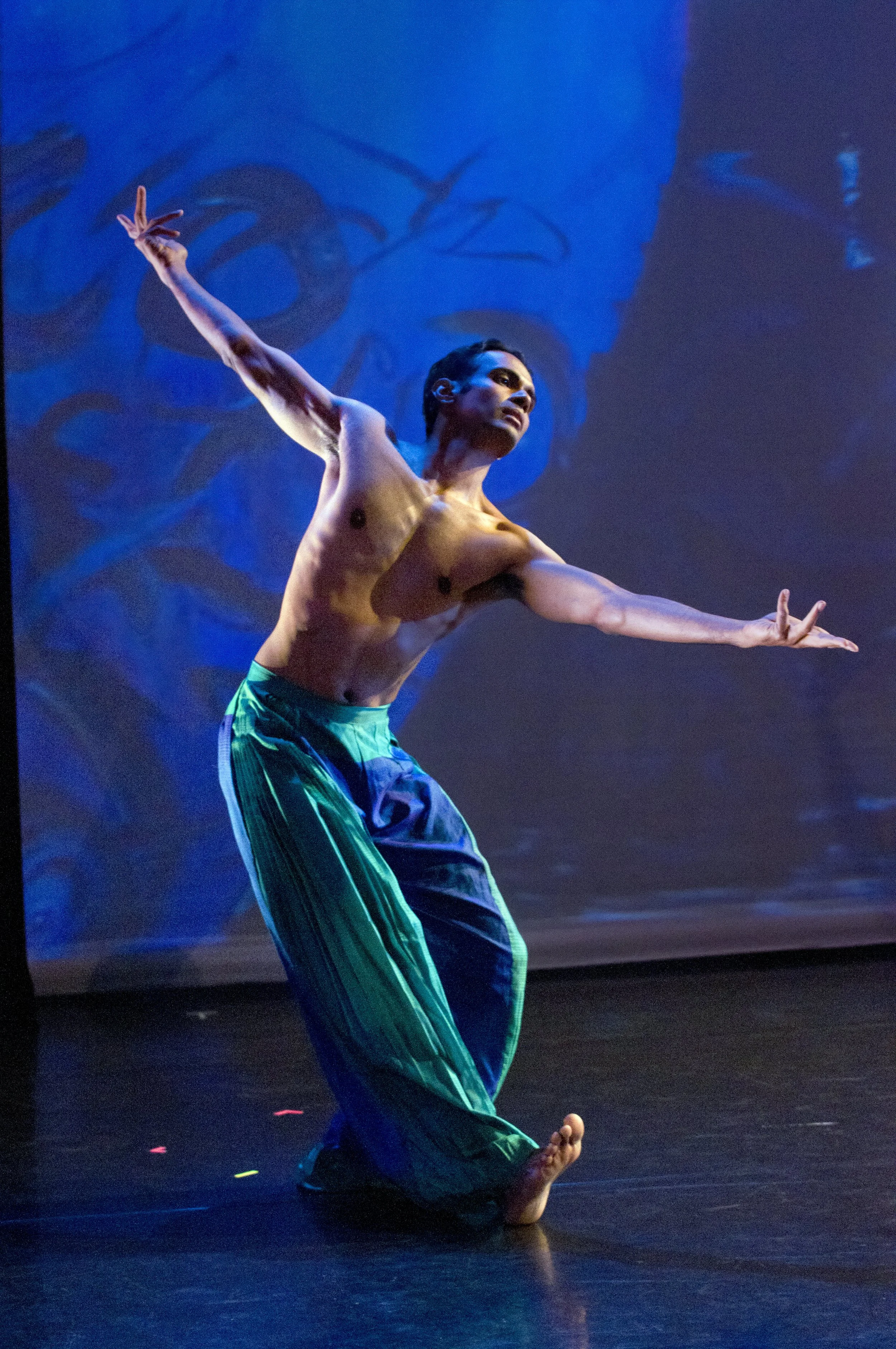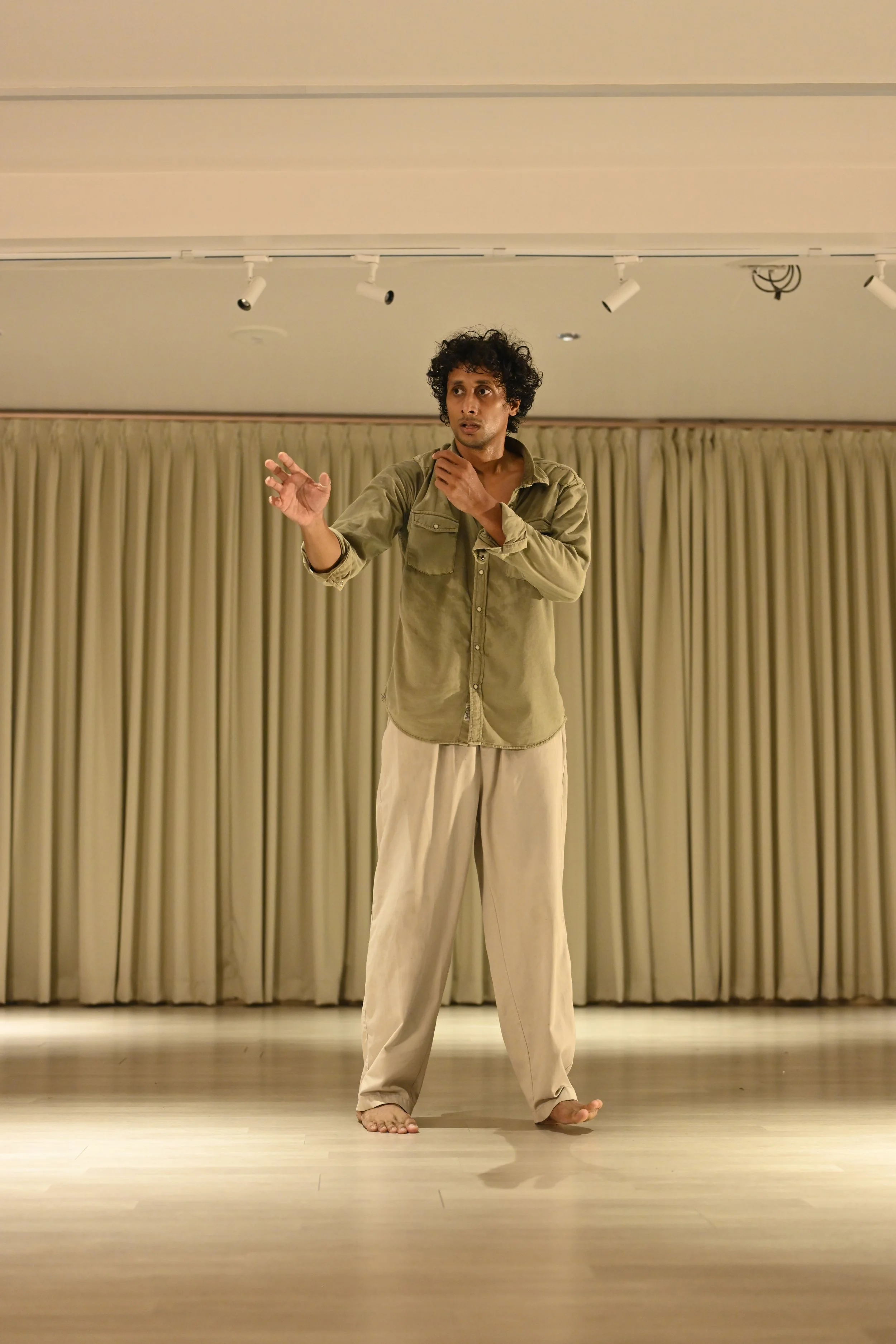 Recently, he has explored choreography, collaborating with Ixchel, a Carnatic violinist, and the poet Ricardo Rosales, aiming to create works connected to his context and identity. His teaching of Kuchipudi, especially to children, has further inspired him to explore new directions in the practice.