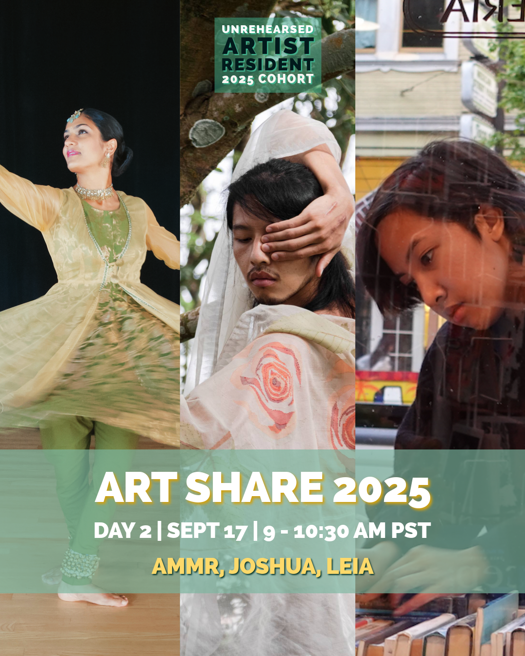 Unrehearsed Artist Residency is created by Nava Dance Theatre, and is a part of the Unrehearsed Activism program, supported by the California Arts Council Impact Grant, San Francisco Arts Commission, Zellerbach Family Foundation, general operating grants, and individual donors. Consider donating to keep this program going! All donations are tax deductible in the US.